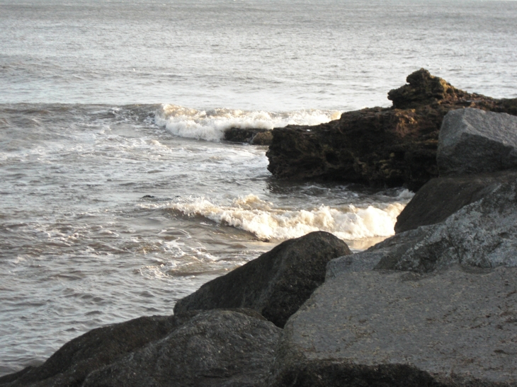 I was about to climb the steps back to the cliff top when I noticed a concrete path running in the opposite direction from which I had come, along the sea defences at the foot of the cliffs (I would hesitate to call it a promenade but the presence of dog-walkers and fishermen indicated that this was its function). I found my way onto it and walked for 10 or 15 minutes until I came to another headland around which I assumed lay Seaham harbour. I left the path and clambered up over the rocks. I have to say that I found this positively exhilarating. Had the way ahead not been blocked by the sea earlier, I would not have explored this part of the beach. The sun was glinting, the breeze was light, and my body glowed from the exertion of leaping from rock to rock. I was happy. I did not climb out to the tip of the headland. The reason for this was that I did not have my mobile. I was wearing good boots that gripped the rocks just fine and I did not think that I would fall, but if I had done so, it would have been difficult to summon help. I shall return again one fine morning with a fully charged mobile phone in my pocket.