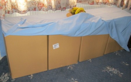 I got a little more sleep but woke up fairly early. I felt driven by a compulsion. I had to tidy the house and remove the traces of her existence that lingered in our sitting room and kitchen. I threw out her cereal box and her apple juice. I put the things she had not been able to pack back into her room. Then I tidied up our sitting room which had been used as a storage depot for all her belongings while she was sorting things out. There remained four large cardboard boxes which housed stuff that might need to be shipped separately once she has a place to live. I pushed them into a line and found a large table cloth to drape over them. Later, I placed a fruit bowl in the centre. I feel that the packing cases have now become, if not an objet d’art, at least an interesting piece of furniture that can live comfortably with the rest of the room for however long it takes.