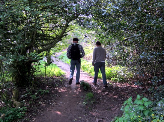 While I lingered to photograph the cow pat, Tom and terry stepped on into the woods…