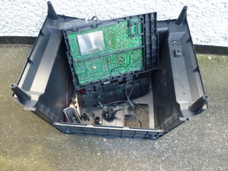 Today a took a big old TV down to the recycling tip. It was really too heavy for me to carry and last week I strained some muscles in my back lugging it into the shed. It was the tube and screen which made it heavy. Anyway, I dismantled it as far as I could, so that I could carry the tube separately and I was just about able to do that, getting it into the car and out again at the recycling tip. Here is a pic of some of the remains.