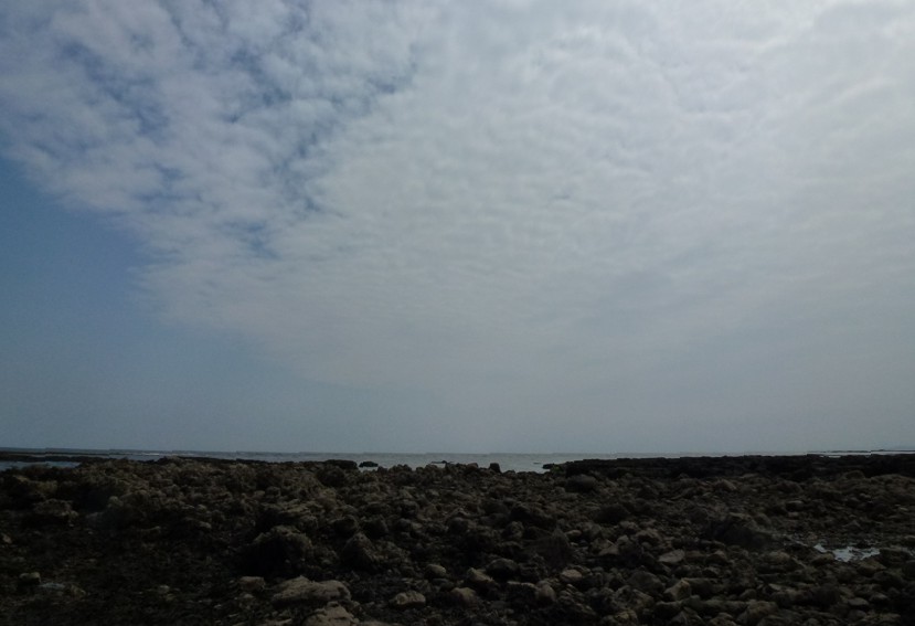Sky: blue with covering of low stratocumulus cloudlets